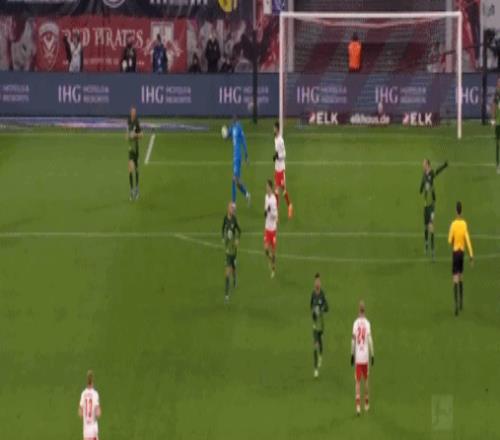 第70分钟,格拉巴拉开球失误,格鲁达助攻迪奥曼德破门,莱比锡1-1沃尔夫斯堡