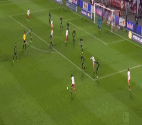 第88分钟,格鲁达禁区内兜射破门,莱比锡2-2沃尔夫斯堡